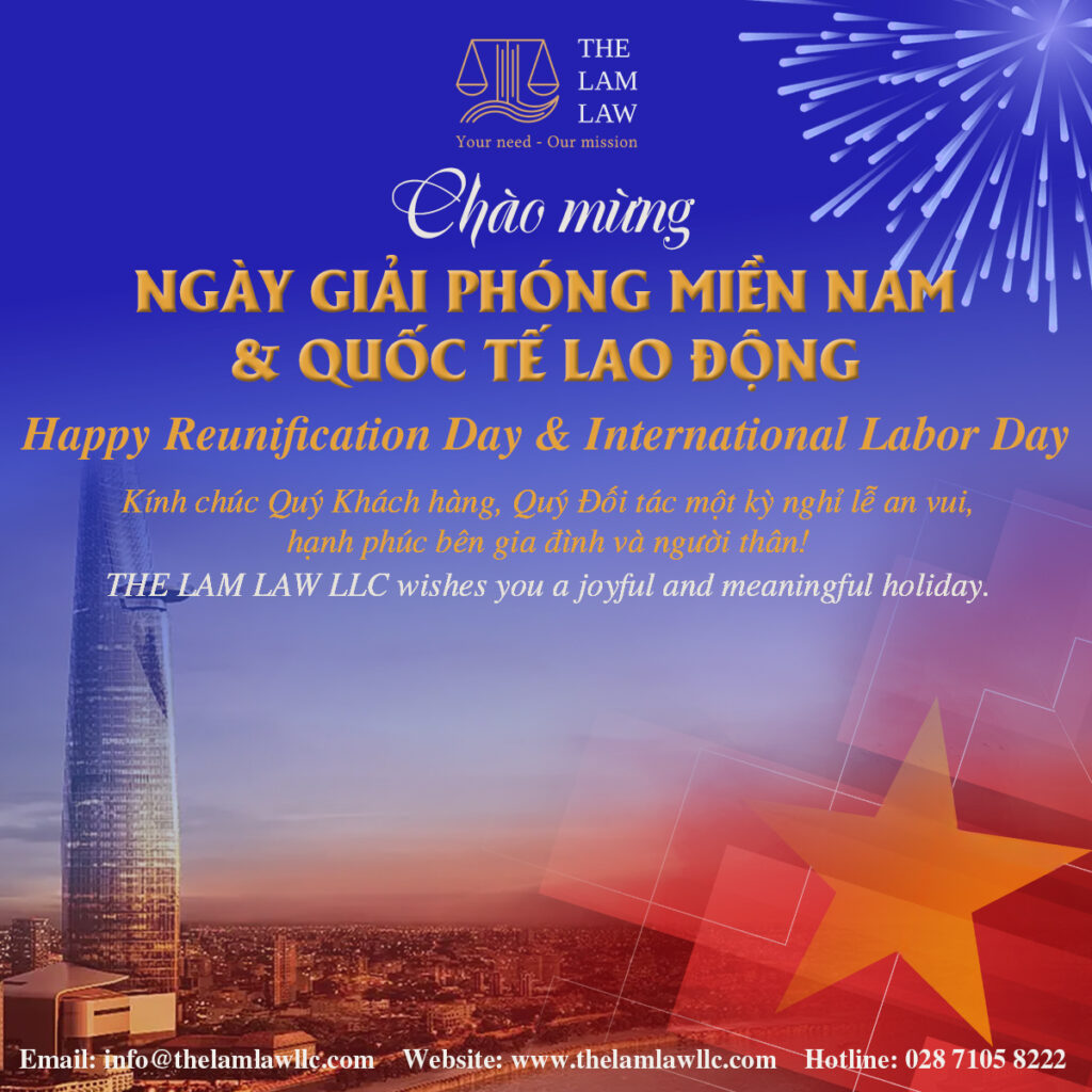 ✨ On the occasion of Vietnam’s Reunification Day and International Labor Day, THE LAM LAW extends our warmest wishes to our valued Clients, Partners. May this holiday season bring you and your loved ones joy, peace and meaningful moments.