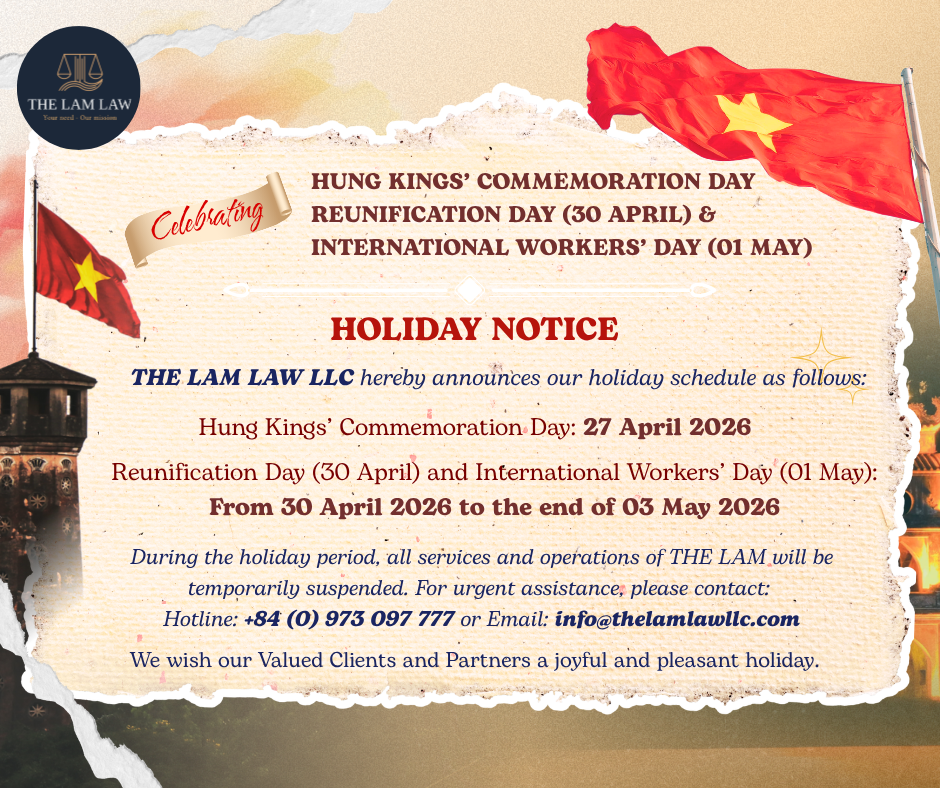 On the occasion of Hung Kings’ Commemoration Day, Reunification Day (April 30) and International Workers’ Day (May 01), THE LAM LAW LLC would like to announce our holiday schedule as follows: