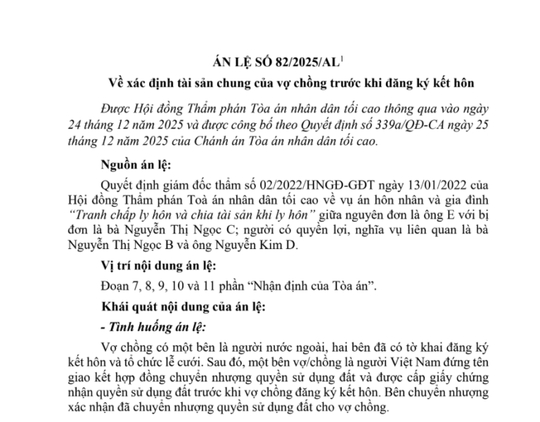 Does being the sole name on a Land Use Right Certificate before official marriage automatically mean it is separate property? 🤔Following our sharing series on the latest Case Laws approved by the …