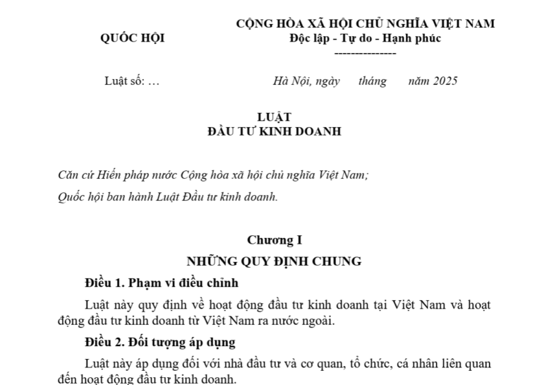 Dự thảo Luật Đầu tư Kinh doanh (thay thế Luật Đầu tư 2020) hiện đang được Quốc hội xem xét. Nếu được thông qua, luật sẽ có hiệu lực từ ngày 01/7/2026. …